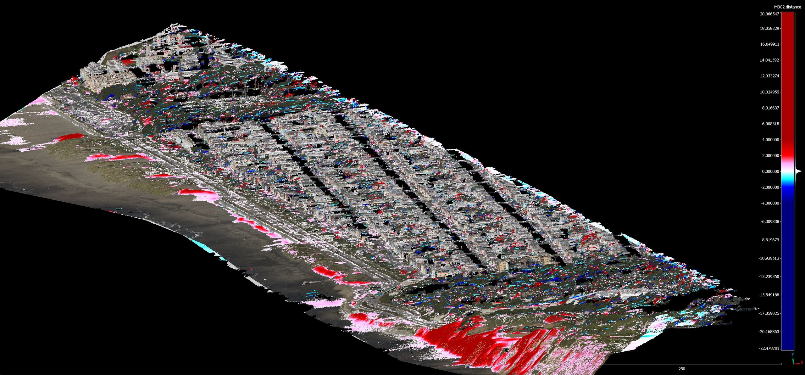 After capturing a 3D model at one point in time, we can repeat the process a month later or after a major storm, beach nourishment...anything. Then we can compare the 3D models from different points in time. This allows us to calculate: